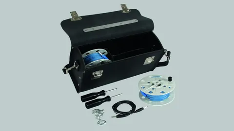 Case with measuring accessories for continuity tester Case with measuring accessories for continuity tester for storing the continuity tester and measuring accessories. Measuring case equipment includes: 2 coilers with unwinding handle, 1 measuring line, 0.75 mm2, 3 m long, 1 test clamp, clamping range (Clamping range 2–21 mm)