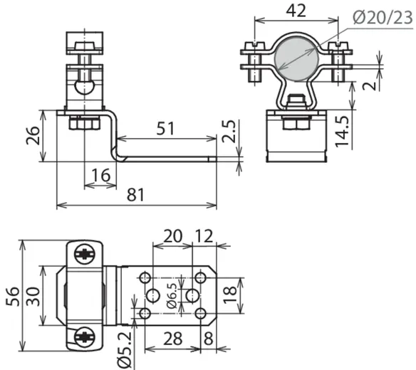Fixing: [4x] Ø5.2 / [2x] Ø6.5 mm