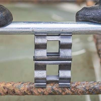 This tool-free clip connects earth electrodes to reinforcement quickly and safely to conserve space, reduce material waste, and minimize environmental impact.