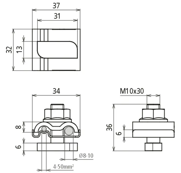 | Screw | Hammer-head bolt (31 x 13 mm), M10 x 30 mm |