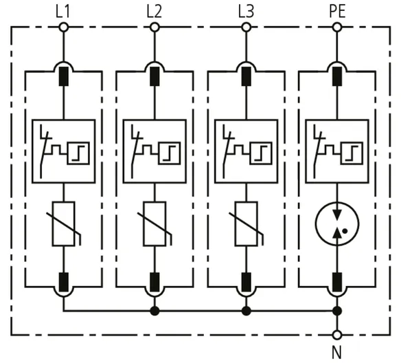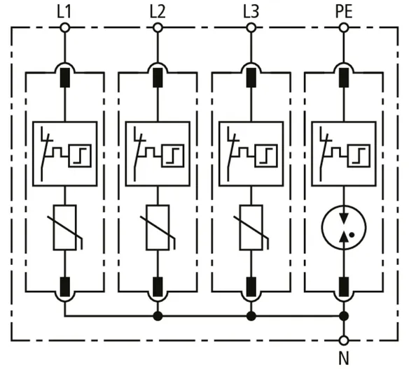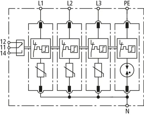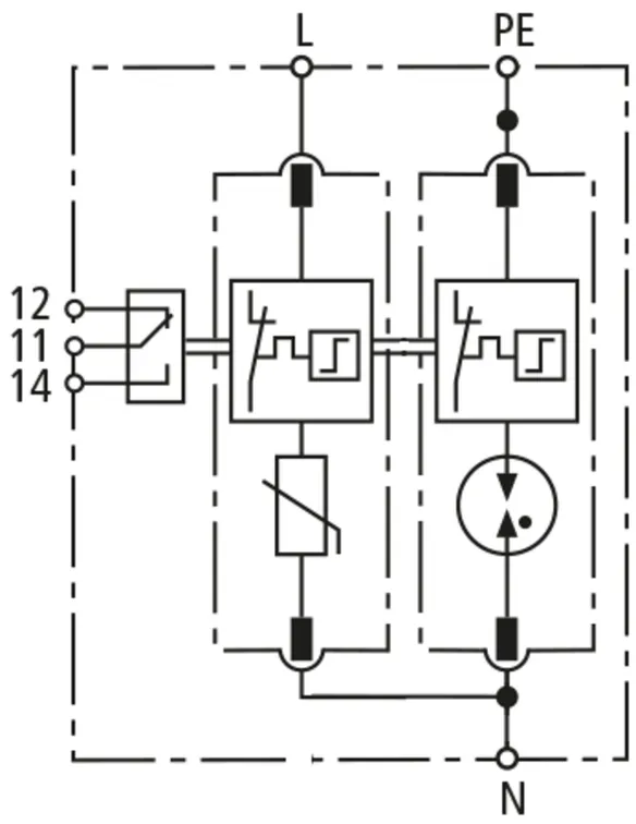 | Lightning impulse current (10/350 µs) [N-PE] (Iimp ) | 12 kA |