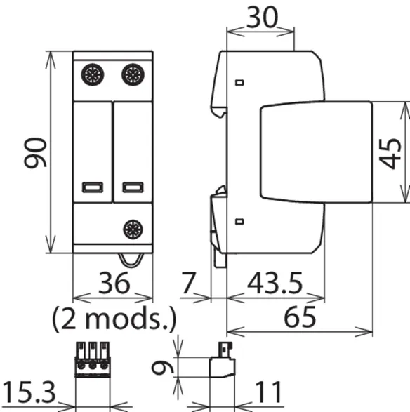 | SPD according to EN 61643-11 / IEC 61643-11 | type 2 / class II |
