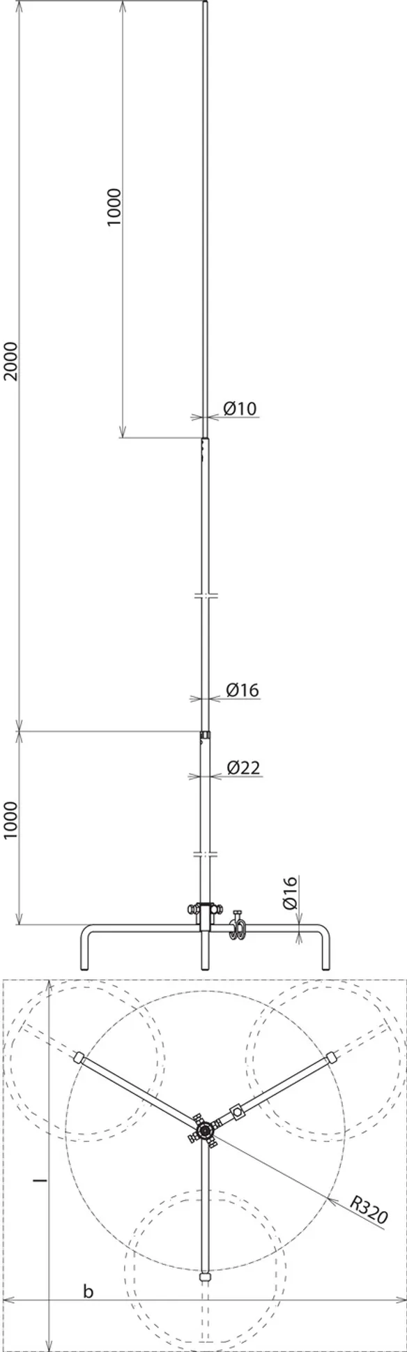 | Space required for tripod with 3 bases, 17 kg each (l x w) | 850 x 930 mm |
