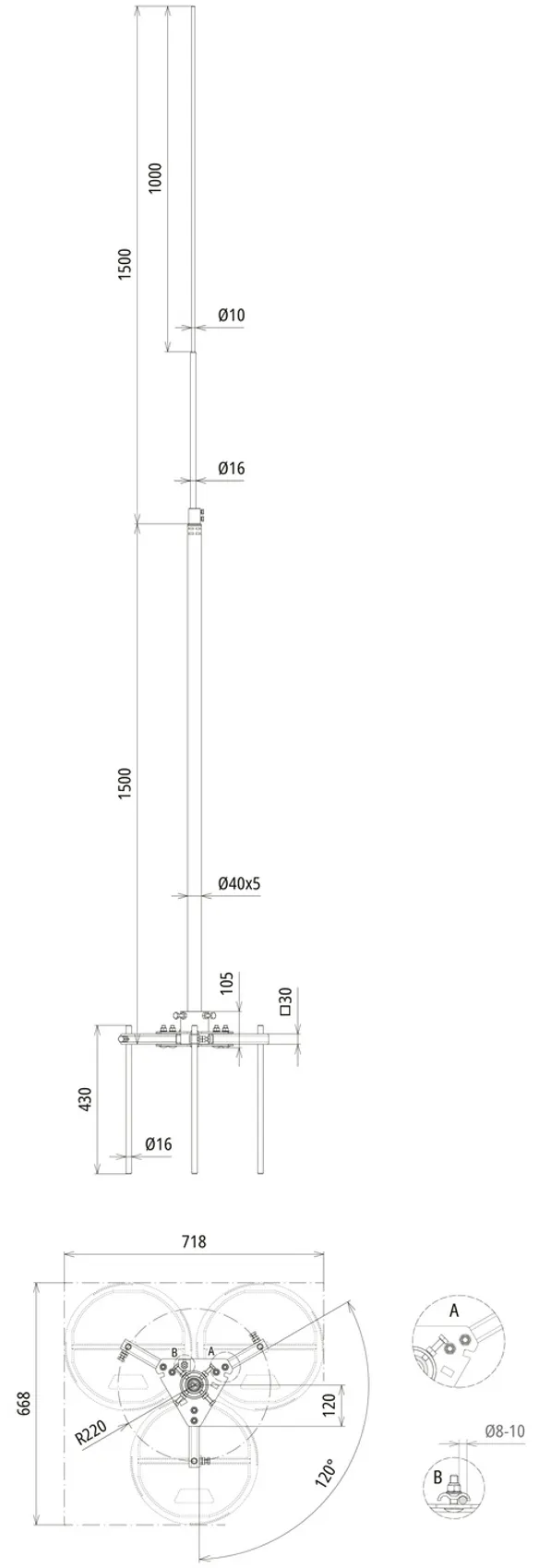 | Space required for tripod with 3 bases, 8.5 kg each (l x w) | 730 x 800 mm |