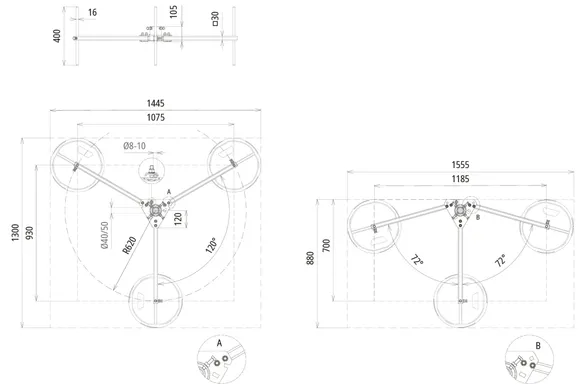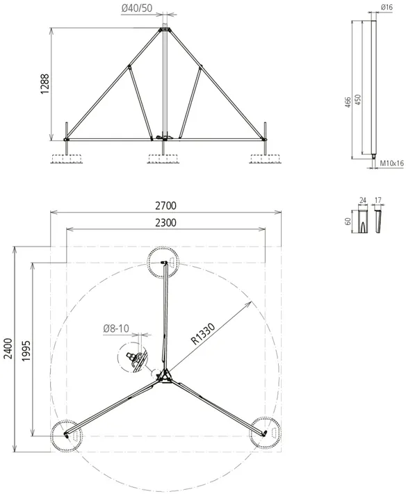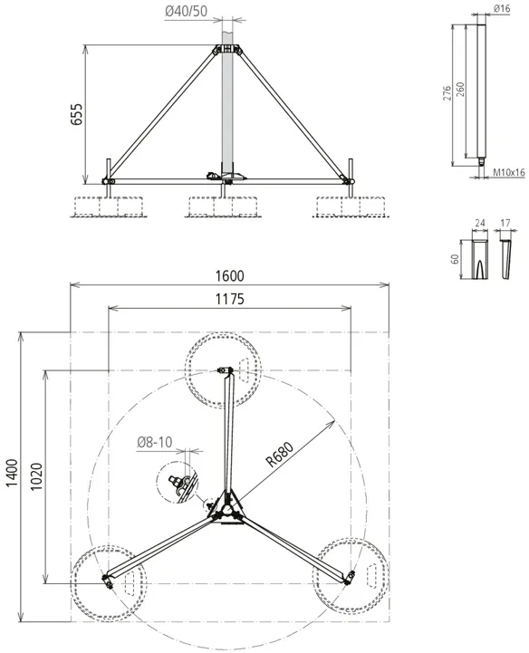 For air-termination rods D40, D50 and D60, DEHNiso Combi supporting tubes with air-termination rod / tip or HVI Conductor installed in / on the supporting tube.