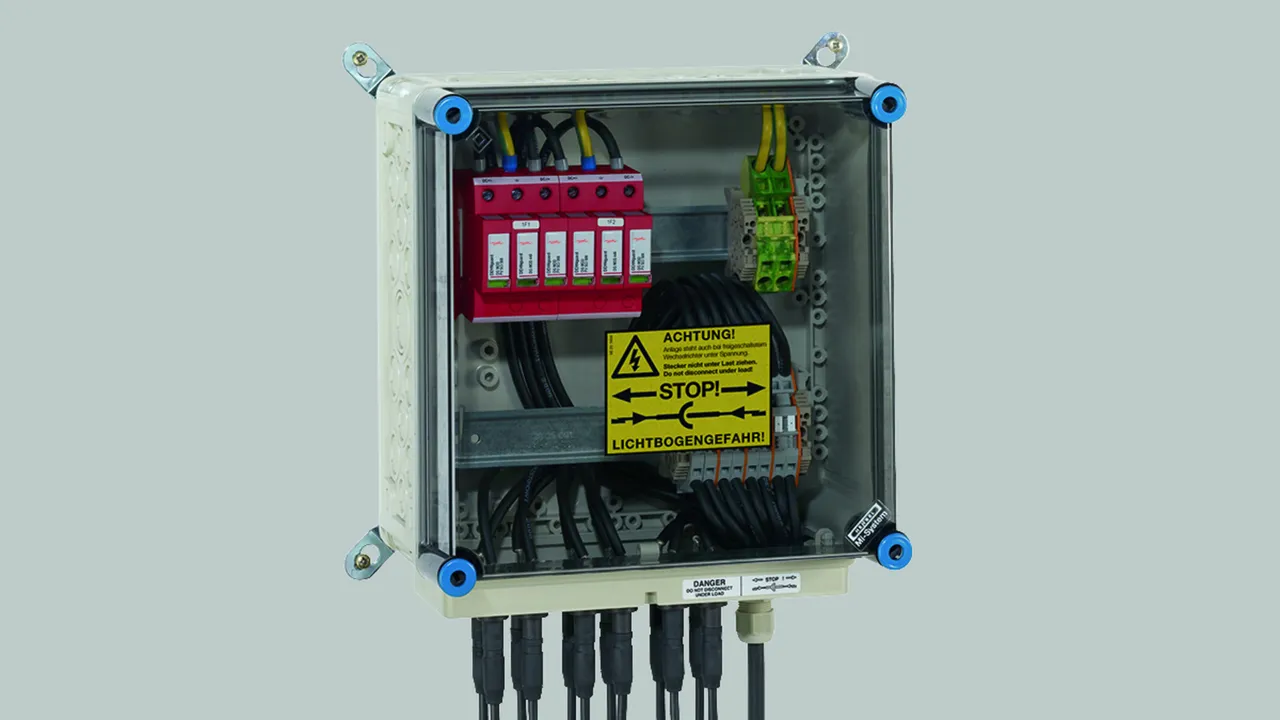 • Prewired modular complete unit for use in photovoltaic systems consisting of a base part and plug-in protection modules