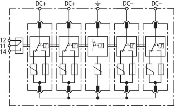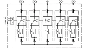 Nominal discharge current (8/20 µs) [(DC+/DC-) --> PE] (In ) 12.5 kA