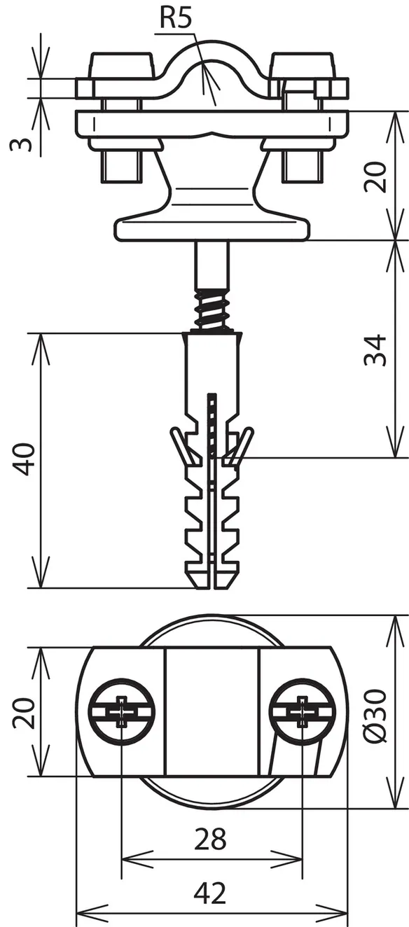 Conductor holder with saddle clamp and flange (M8 female thread)