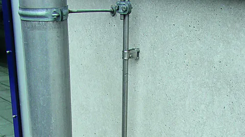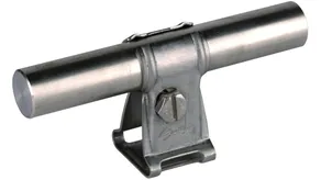 Rod holder with claw, StSt Rod holder with claw For wall mounting with M6 locking screw, for air-termination rods, earth entry rods or round wires with plastic coating, fixed conductor leading