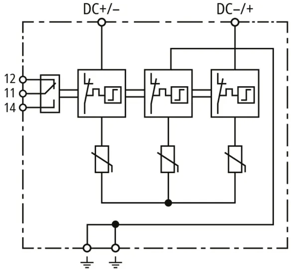 | Max. discharge current (8/20 µs) [(DC+/DC-) --> PE] (Imax ) | 40 kA |