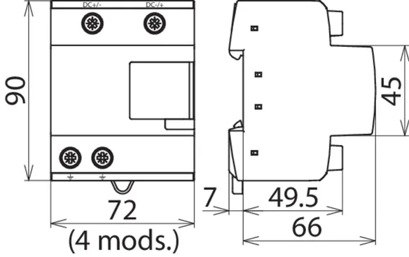| Max. discharge current (8/20 µs) [(DC+/DC-) --> PE] (Imax ) | 40 kA |