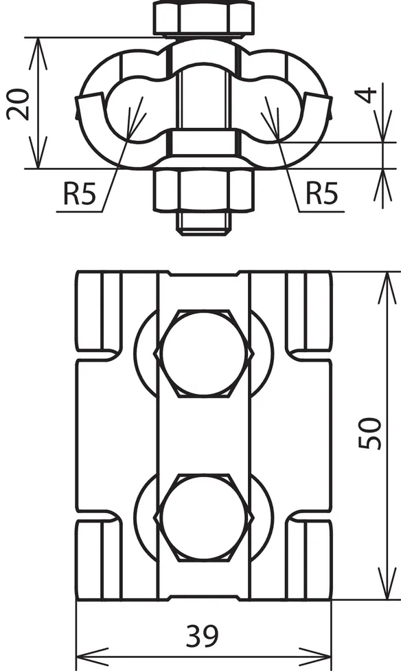 Parallel connector with two screws, Cu