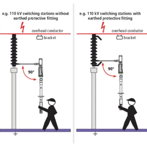 The green ring on the ASP distance voltage detector with category "L" electric field sensor is used to make contact with the last earthed protective fitting in such a way that the electric field sensor points in the direction of the overhead conductor fixed at the other end of the insulator.