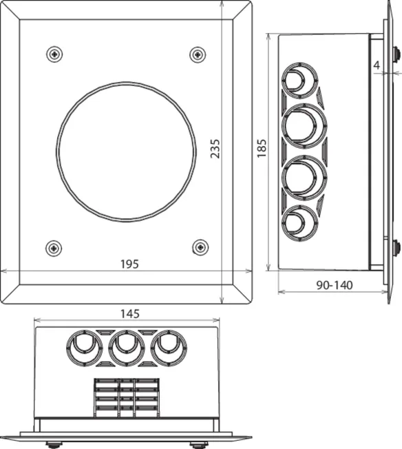 It is continuously adjustable from 90-140 mm. Thanks to the additional spacer, the test joint box can be used for insulation material thicknesses up to 320 mm.