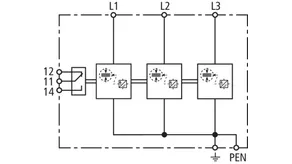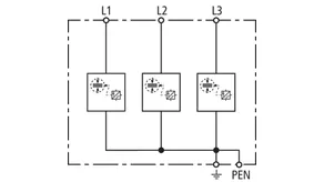 | Lightning impulse current (10/350 µs) [L1+L2+L3-PEN] (Itotal ) | 22.5 kA |