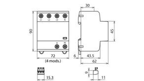 | Lightning impulse current (10/350 µs) [L1+L2+L3+N-PE] (Itotal ) | 30 kA |