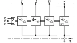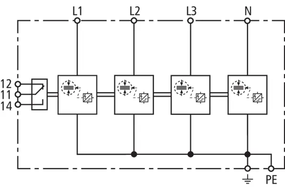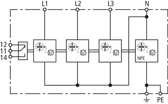 | Lightning impulse current (10/350 µs) [L, N-PE] (Iimp ) | 12.5 kA |