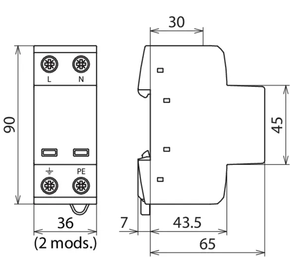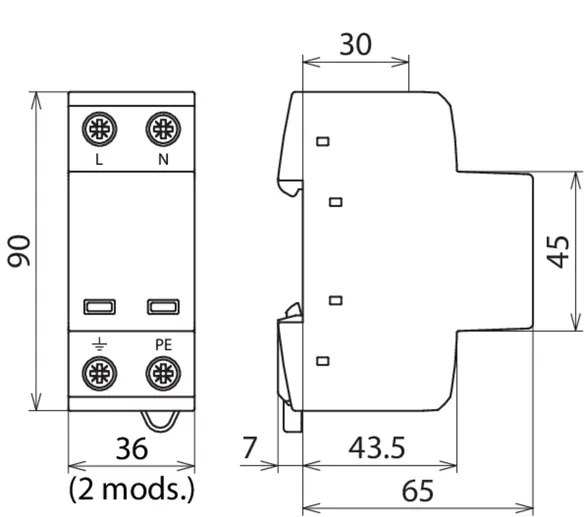 | Lightning impulse current (10/350 µs) [L-N]/[N-PE] (Iimp ) | 7.5 / 30 kA |