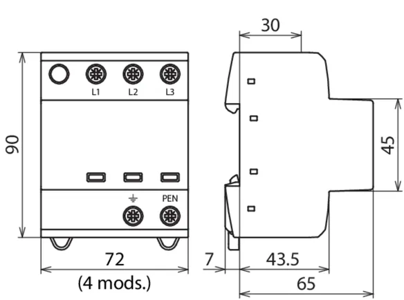 | Lightning impulse current (10/350 µs) [L-PEN] (Iimp ) | 7.5 kA |