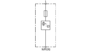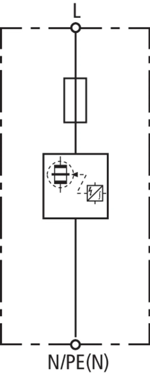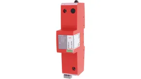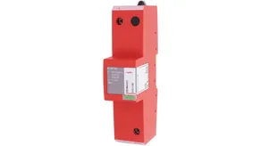 Single-pole combined lightning current and surge arrester with an integrated backup fuse capable of carrying lightning currents for use in 230 / 400 V systems; FM version with floating remote signalling contact.