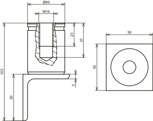 Angle dimensions (l x w x d) 50 x 50 x 5 mm