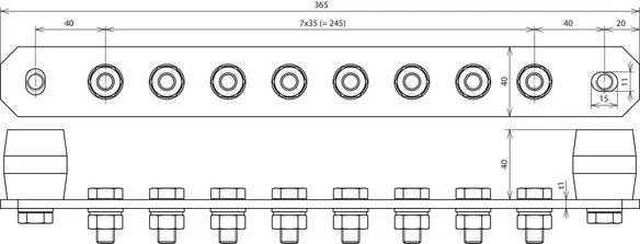 Dimensions (l x w x d1) 365 x 40 x 6 mm