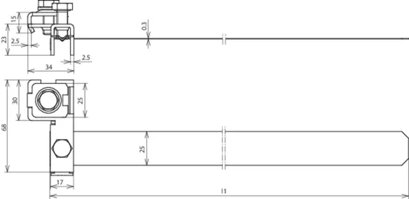 Dimensions of strap (l1 x w x d) 570 x 25 x 0.3 mm