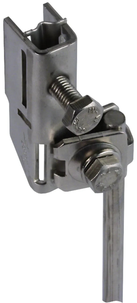 Gutter clamp for the lightning-current-carrying connection of the antenna earthing (e.g. 16 mm2) at the cross point with the gutter.