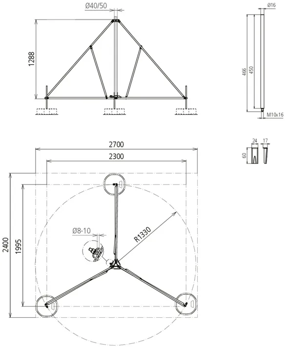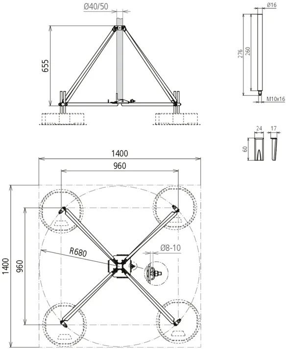 | Number of concrete bases | 3-12 blocks, 17 kg each |