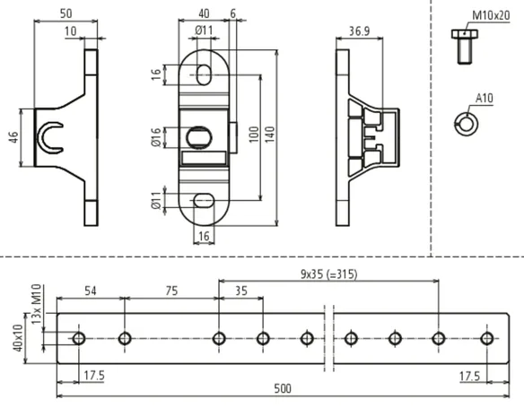 | Max. short-circuit current (AC 50 Hz / DC / 5 s) StSt (V4A) 30x3.5 mm / 40x5 mm | 750 A / T4 |