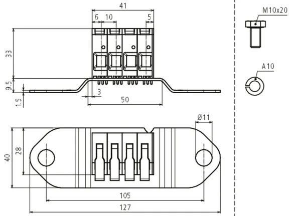 | Max. short-circuit current (AC 50 Hz / DC / 5 s) St/tZn Ø10 mm | 1000 A / T4 |