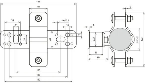 | Fixing | [8x] Ø5.1 / [4x] 7 x 10 / [2x] 11 x 20 mm |