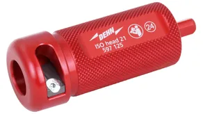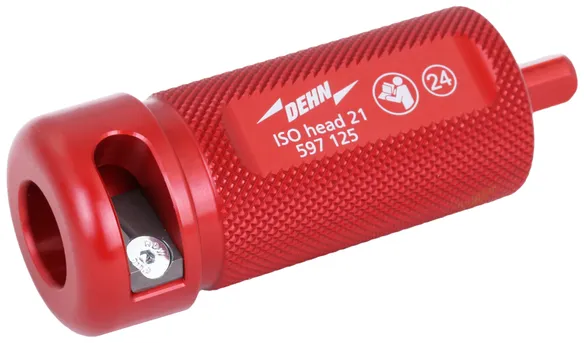 HVI strip 20 tool for stripping the semi-conducting sheath and the PE insulation of the HVI Conductor and HVI light plus Conductor with an outer diameter of 20 mm. The stripping length is adjustable in steps of 0.2 mm (lock points) using the knob in the handle. Version complete with handle and stripping insert.