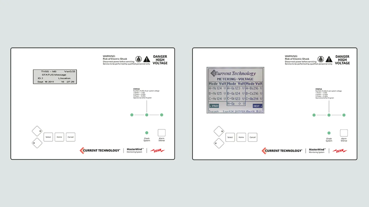 • Monitors and communicates the available surge protection for each phase, as a percentage of protection remaining.