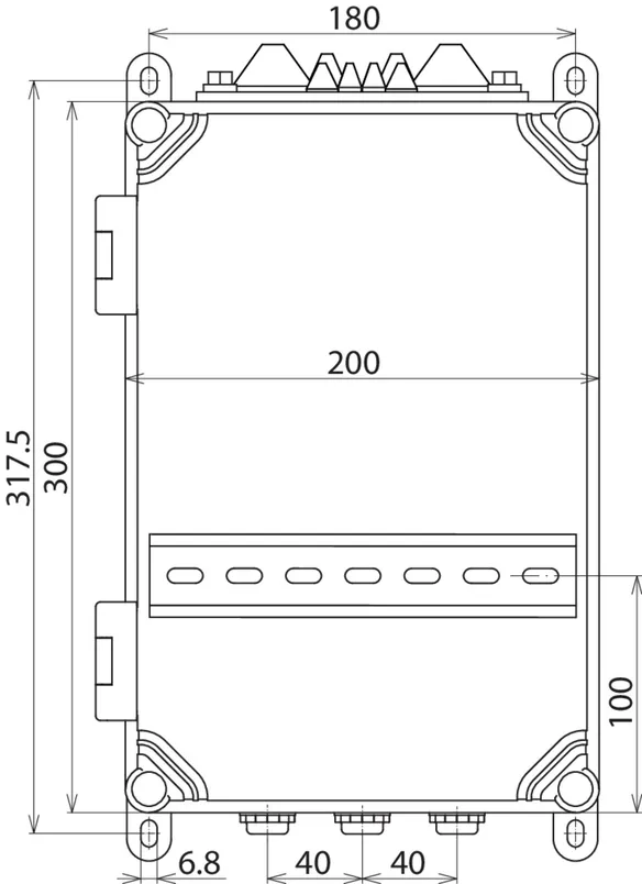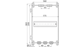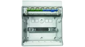 Insulating enclosure with a max. capacity of 2x 12 modules for non-exhausting arresters; with integrated elastic sealing grommet for entering the cables; ideally suited for series connection.