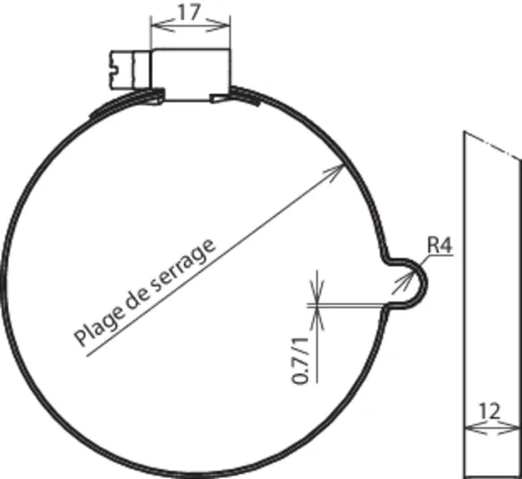 | Plage de serrage Ø tube | 80-120 mm, réglable par paliers de 5 mm |