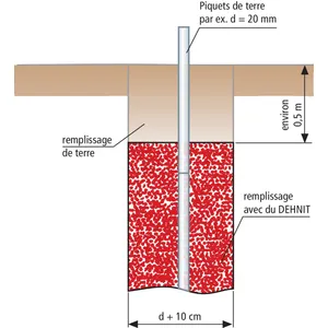 L'argile spéciale à fort potentiel de gonflement et à grande capacité de rétention d’eau constitue une enveloppe pour la prise de terre. Celle-ci favorise ainsi la résistance de terre.