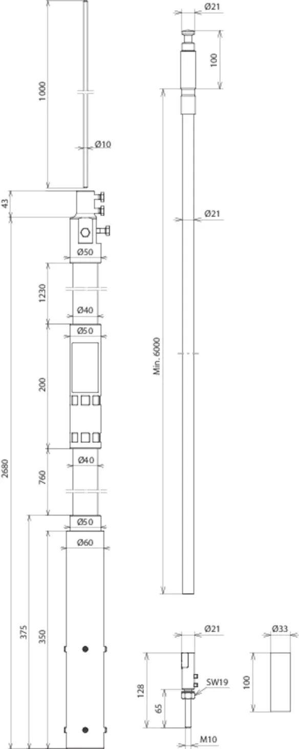 Longueur, tube support: 2680 mm