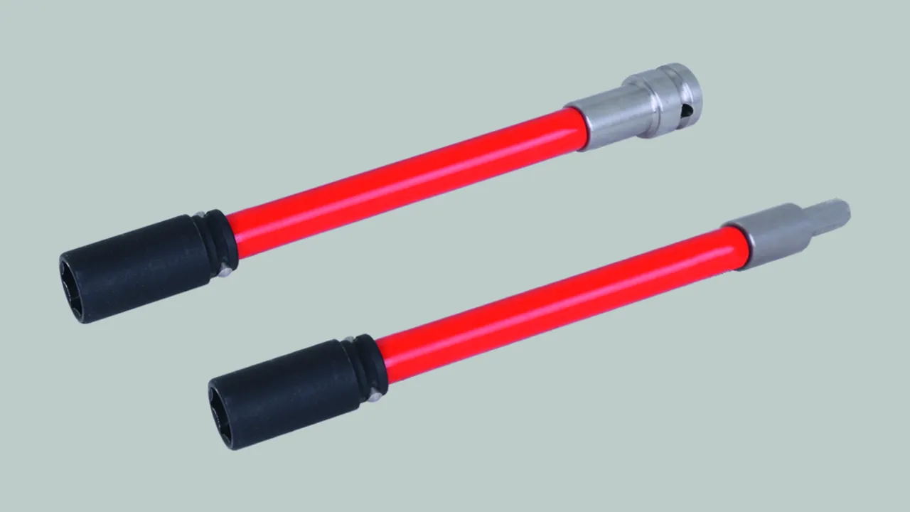 Utensile di prolunga in acciaio inossidabile con bussola magnetica a molla (LC17) e un attacco quadrato da 1/2 pollice per l'utilizzo con un avvitatore. Con impugnatura rossa girevole. Sono inoltre inclusi: Anello a O e spinotto di bloccaggio.